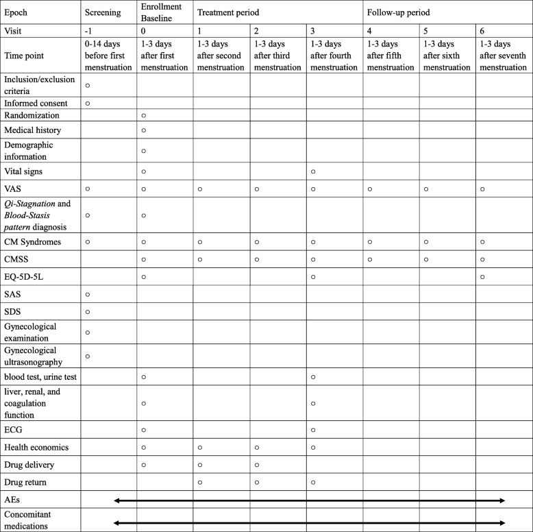From: Chinese herbal formula Xuefu Zhuyu for primary dysmenorrhea patients (CheruPDYS): a study protocol for a randomized placebo-controlled trial